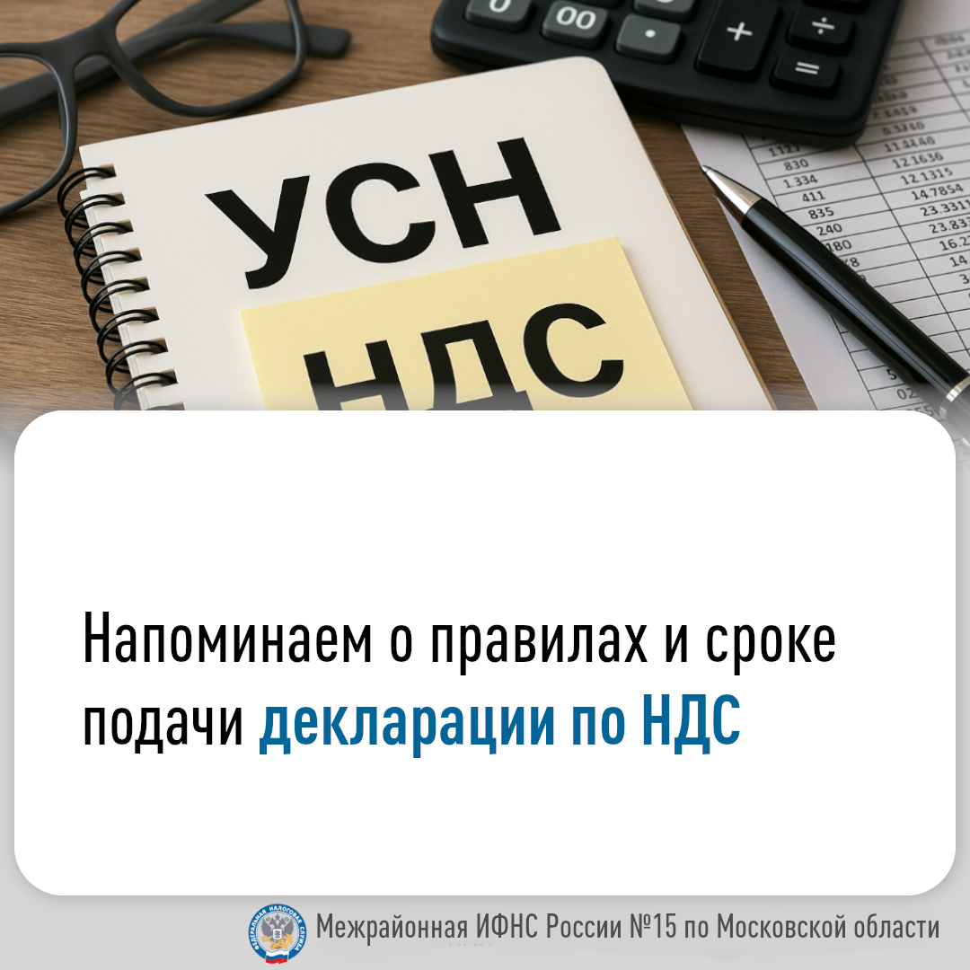 Декларация по НДС подается исключительно в электронном виде через оператора электронного документооборота. Срок подачи — не позднее 25-го числа месяца, следующего за отчетным кварталом. Уплата НДС производится равными долями в течение трех месяцев, следующих за отчетным кварталом, при этом каждый платеж должен быть внесен не позднее 28-го числа соответствующего месяца.