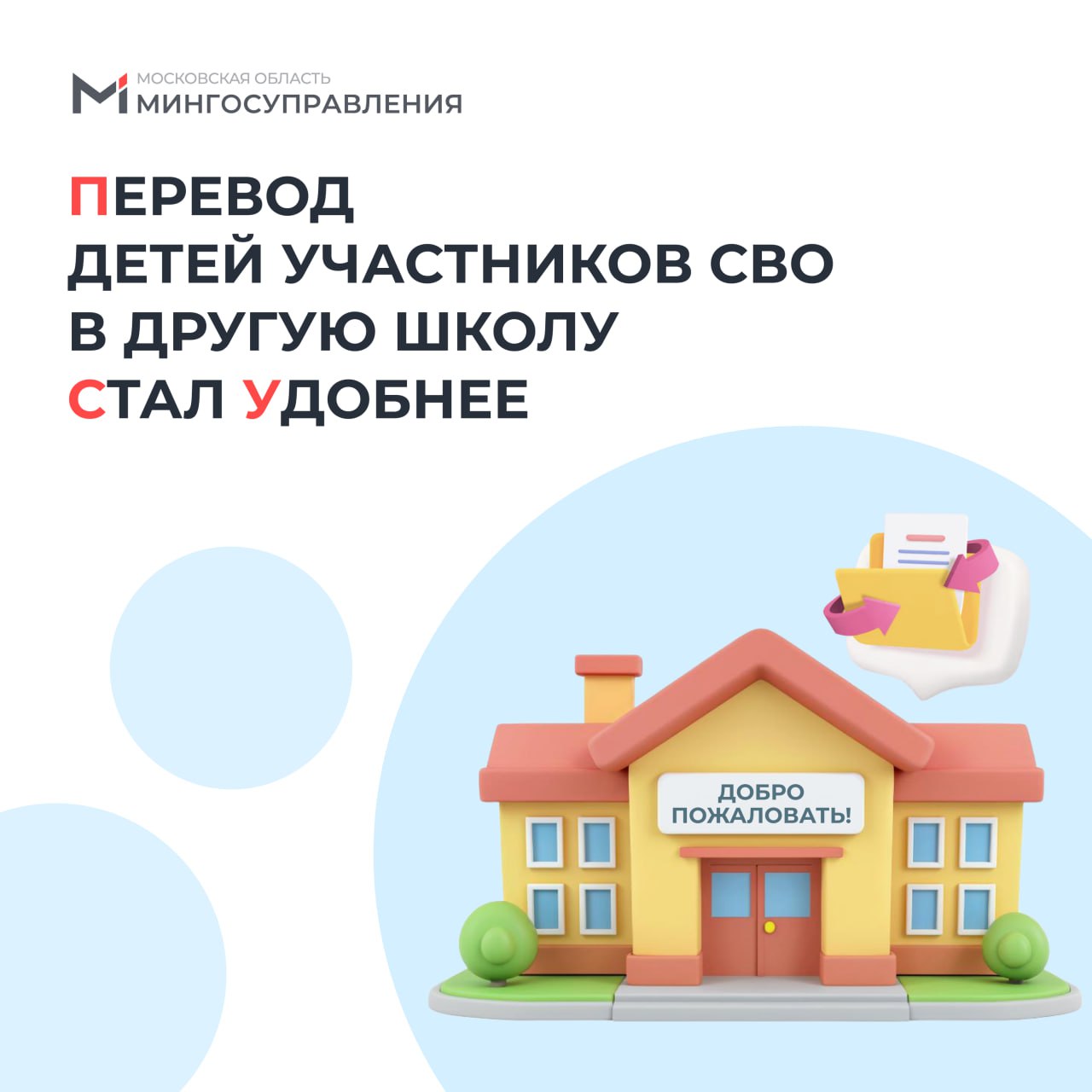 ℹ️ Дети участников специальной военной операции имеют внеочередное право на перевод в ближайшую к месту проживания семьи муниципальную школу Московской области