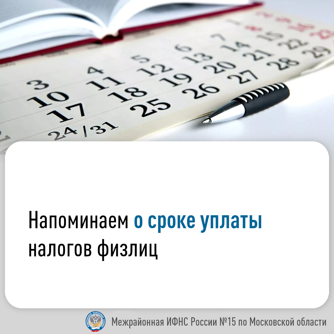 Напоминаем о сроке уплаты налогов физлиц